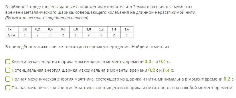 Можно вопрос насчет 4 задачи?А вы уверены,что там 1 правильный ответ?Если рассматривать потенциальную энергию шарика,она не будет максимальной на h=5?