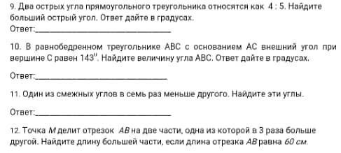 11. Пусть x — 1 часть. первый угол равен x, второй угол равен 7 x.