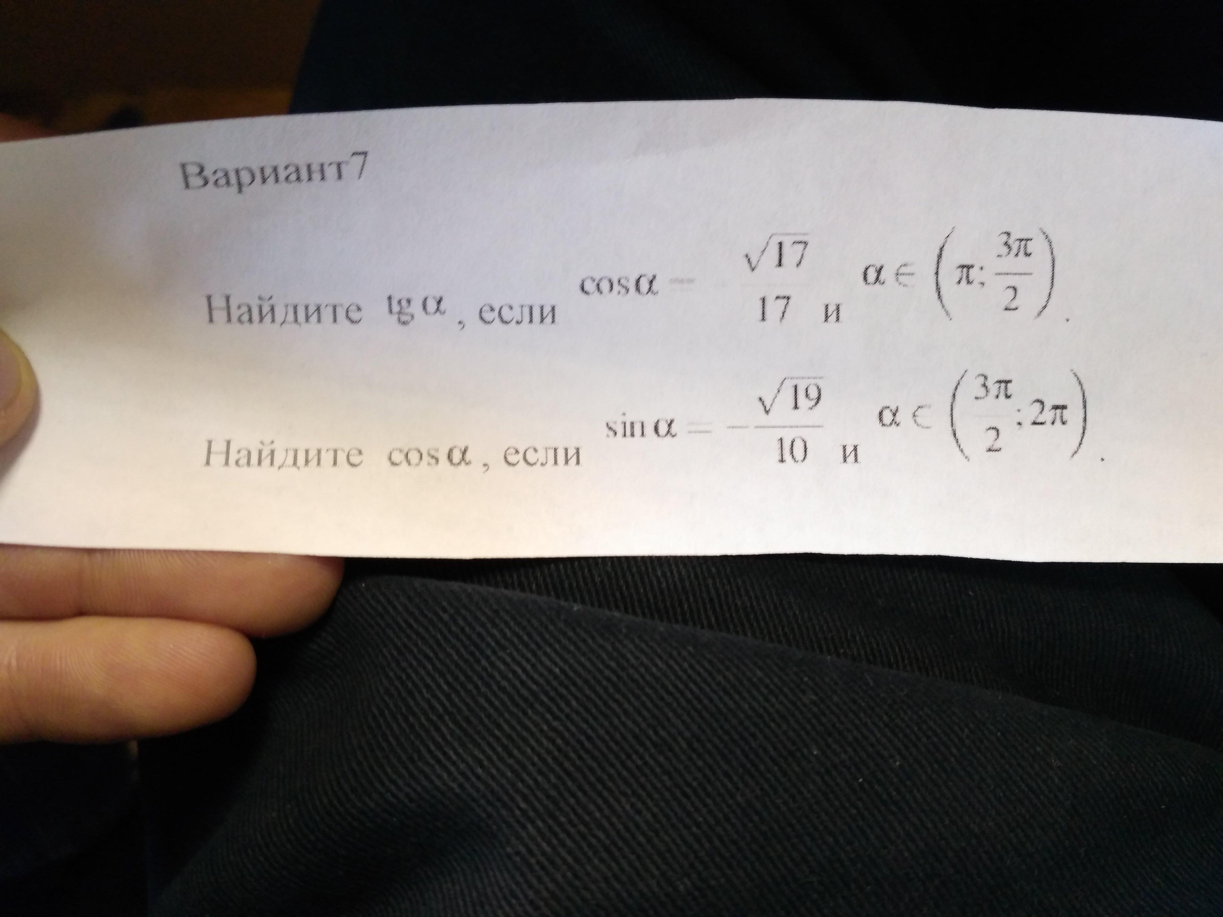 по формуле cosa=√(1-sin²a)= √(1-(√19/10)²=√(1-19/100)=