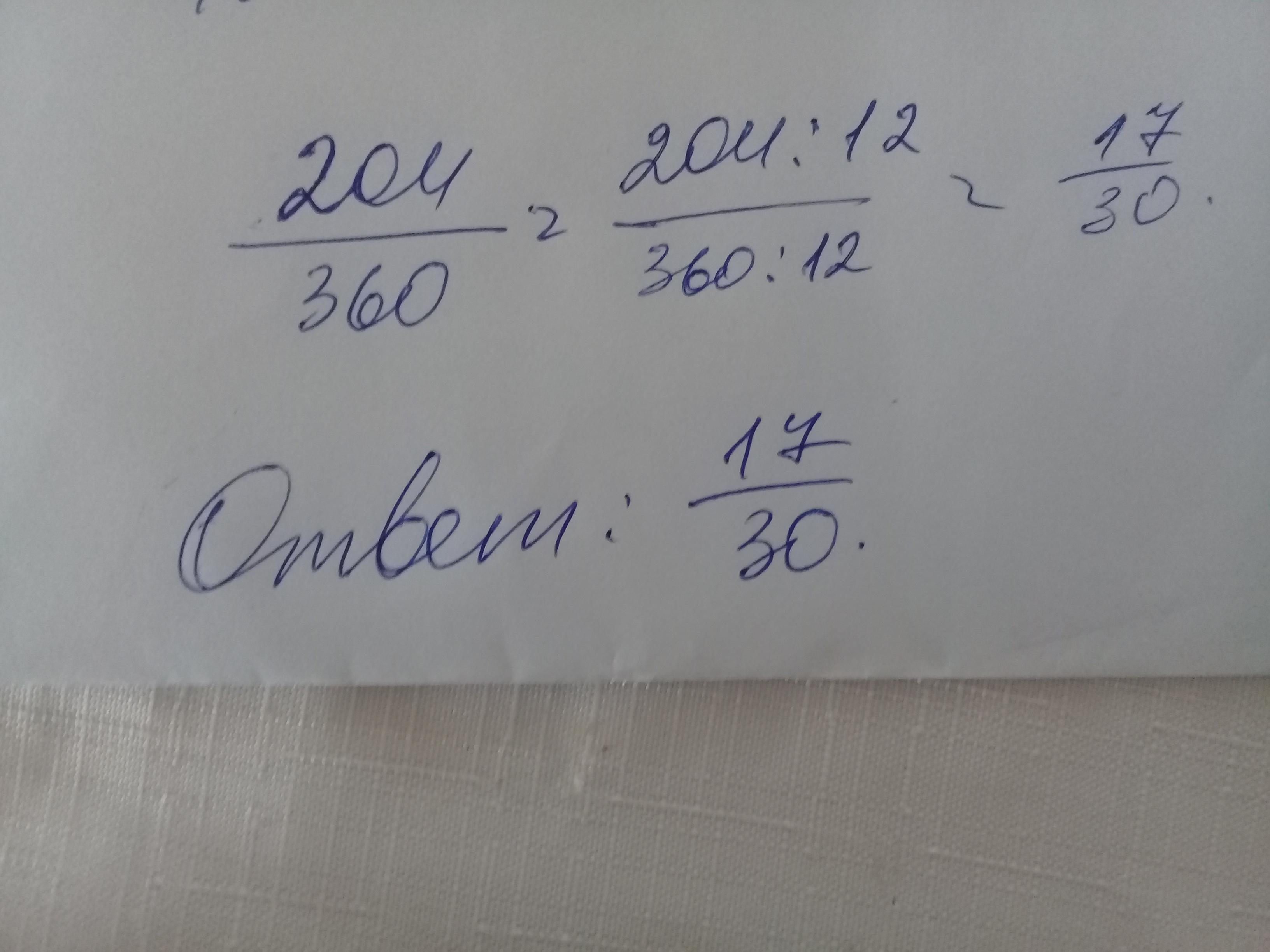 Этот пользователь все ясно написал.он и 204 и 360 делил на 12.Т.е. знаменатель и числитель делил на 12.И получил 17/30