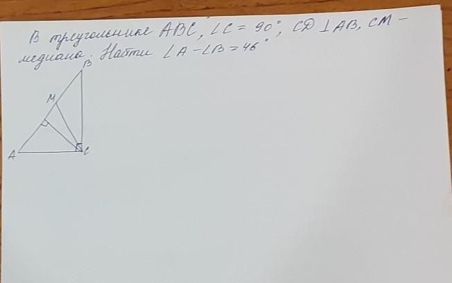 Итак угол A равен 68°, тогда угол 68-46=22°