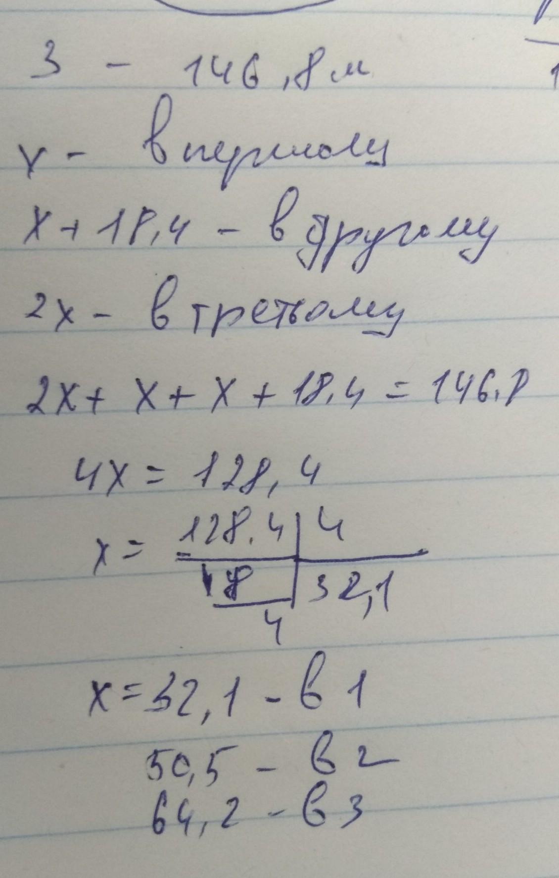 9. У трьох рулонах 146,8 м тканини, причому в другому рулоні на 18,4 м