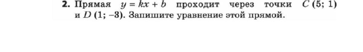 Ответ: подставляем координаты точек и получаем систему: {5k+b=1, k+b= -3; k= -b-3. подставляем в 1 уравнение: 5*(-b-3)+b=1; -5b+b-15=1; -5b+b=1+15; -4b=16; b=16/ (-4)= -4. k=-(-4)-3=4-3=1. Ответ: y=x-4.