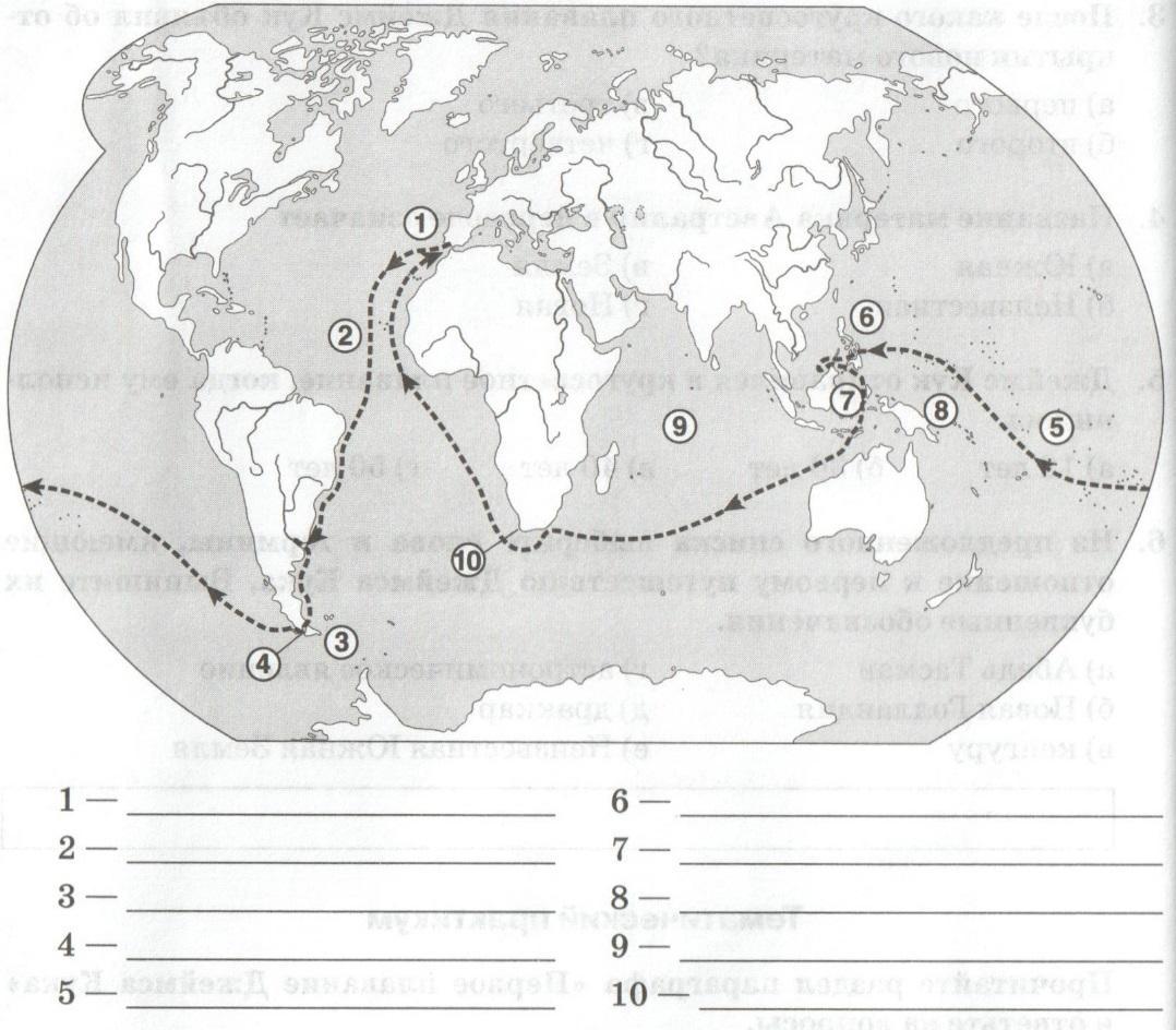 Проследите по карте путь экспедиции Фернана Магеллана и назовите географические объекты, через которые он проходил.