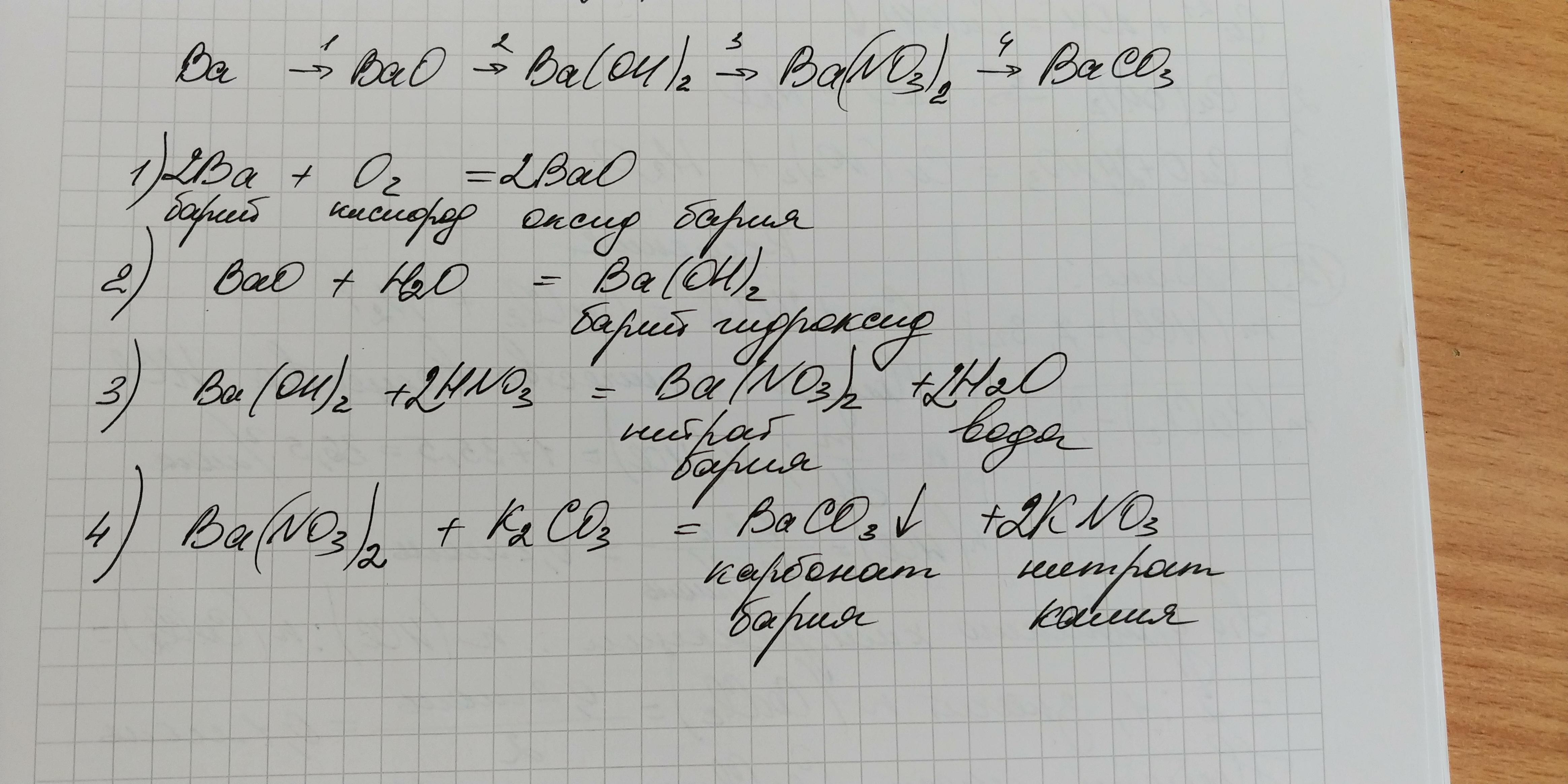 Ва → ВаО → Ва(ОН)2 → Ва(N03)2→ВаС03