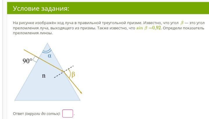 3. по условию из рисунка угол падения а=60°, n2/n1=sina/sinb= 1/n (n.воздуха=1), n=sinb/sin60= 0.92/0.866=1.06