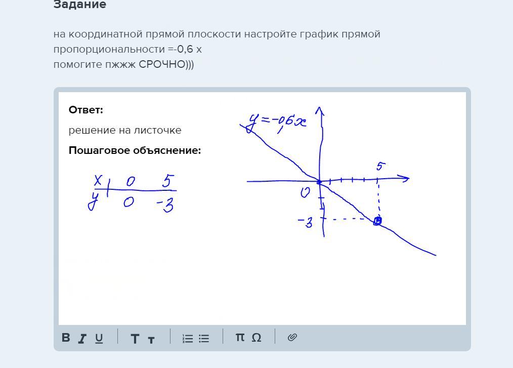 на координатной прямой плоскости настройте график прямой пропорциональности =-0,6 x