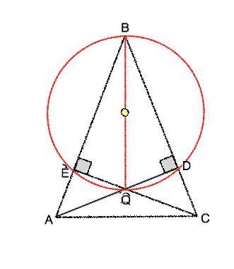 В четырехугольнике BEQD проведем диагональ ВQ, которая является общей гипотенузой треугольников DEQ и BDQ. Радиус окружности, описанной около прямоугольного треугольника, лежит на середине гипотенузы и равен её половине. Следовательно ,для прямоугольных треугольников ВEQ и BDQ описанная окружность будет общей и описанной около четырехугольника BEQD. Доказано.