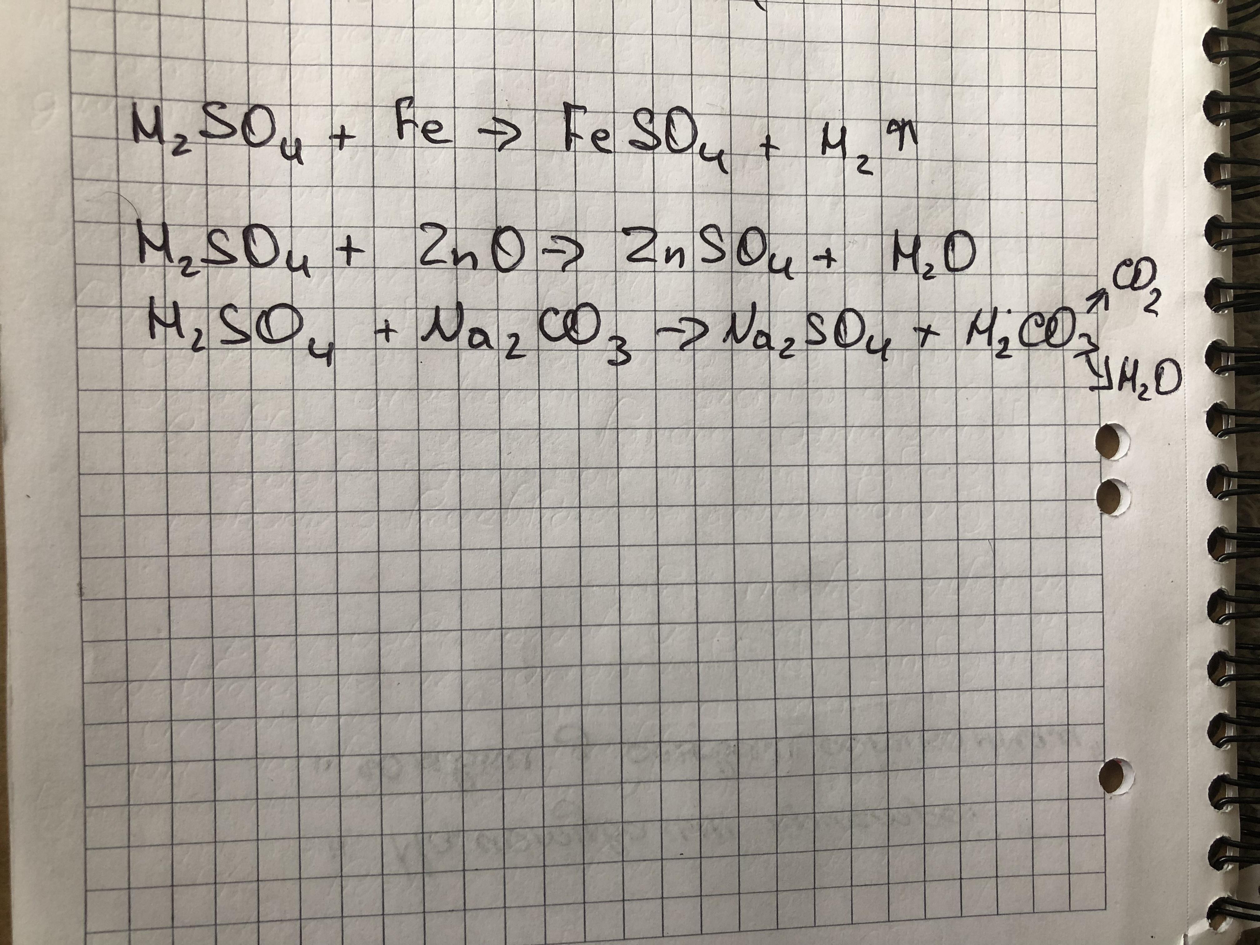Складіть рівняння реакцій сульфатної кислоти із: а) залізом б) цинк оксидом в) натрій карбонатом.