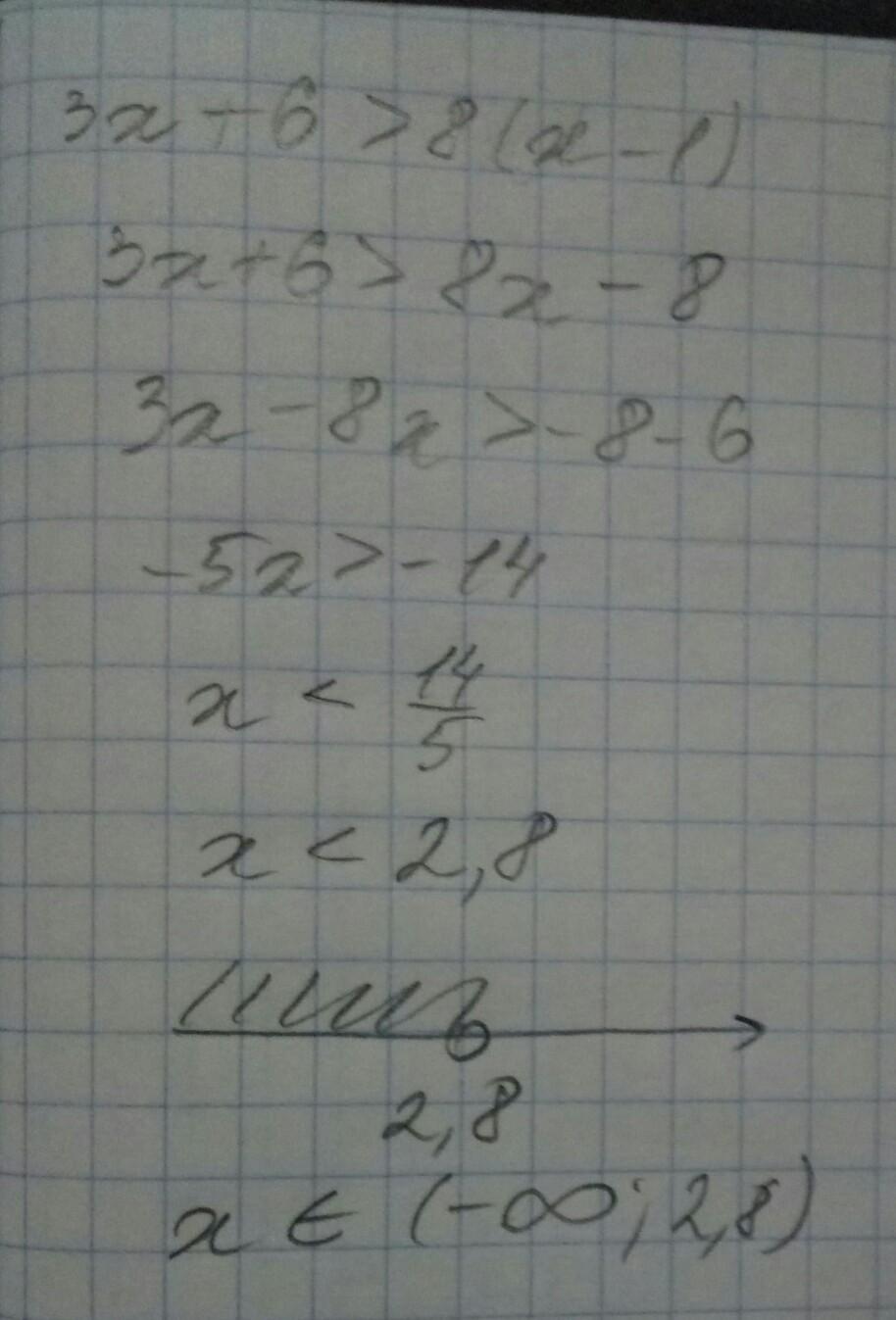 решение неравенства от минус бесконечности до 2,8 , число 3 не входит в промежуток