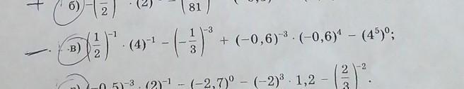 (1/2)^-1 × (4)^-1 - (-1/3)^-3 + (-0,6)^-3 × (-0,6)^4 - (4^5)^0 = (1/2 × 4)^-1 - (-3)^3 - 0,6^-3 × 0,6^4 - 1 = 2^-1 - (-27) - 0,6 - 1 = 1/2 + 27 - 3/5 - 1 = - 1/10 + 26 = - 1/10 + 260/10 = 259/10 = 25,9