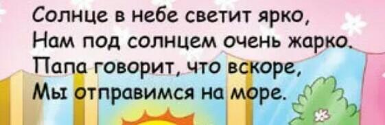 Ответ Опять смеется лето В открытое окно, И солнышка, и света Полным, полным-полно! Шортики и майки Лежат на берегу, И нежатся лужайки В ромашковом снегу!