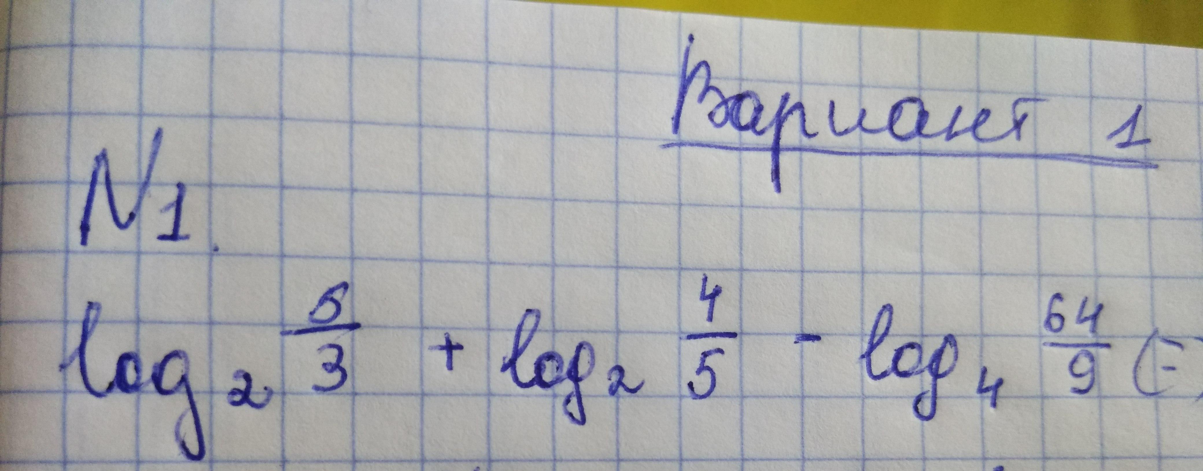 log₂(5/3)+log₂(4/5)-log₄(64/9)=log₂((5/3)*(4/5))-log₄(8/3)²=