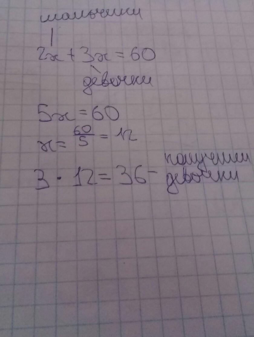 Купили 60 билетов в театр и разделили их между мальчиками и девочками в отношении 2:3 сколько билетов получили девочки
