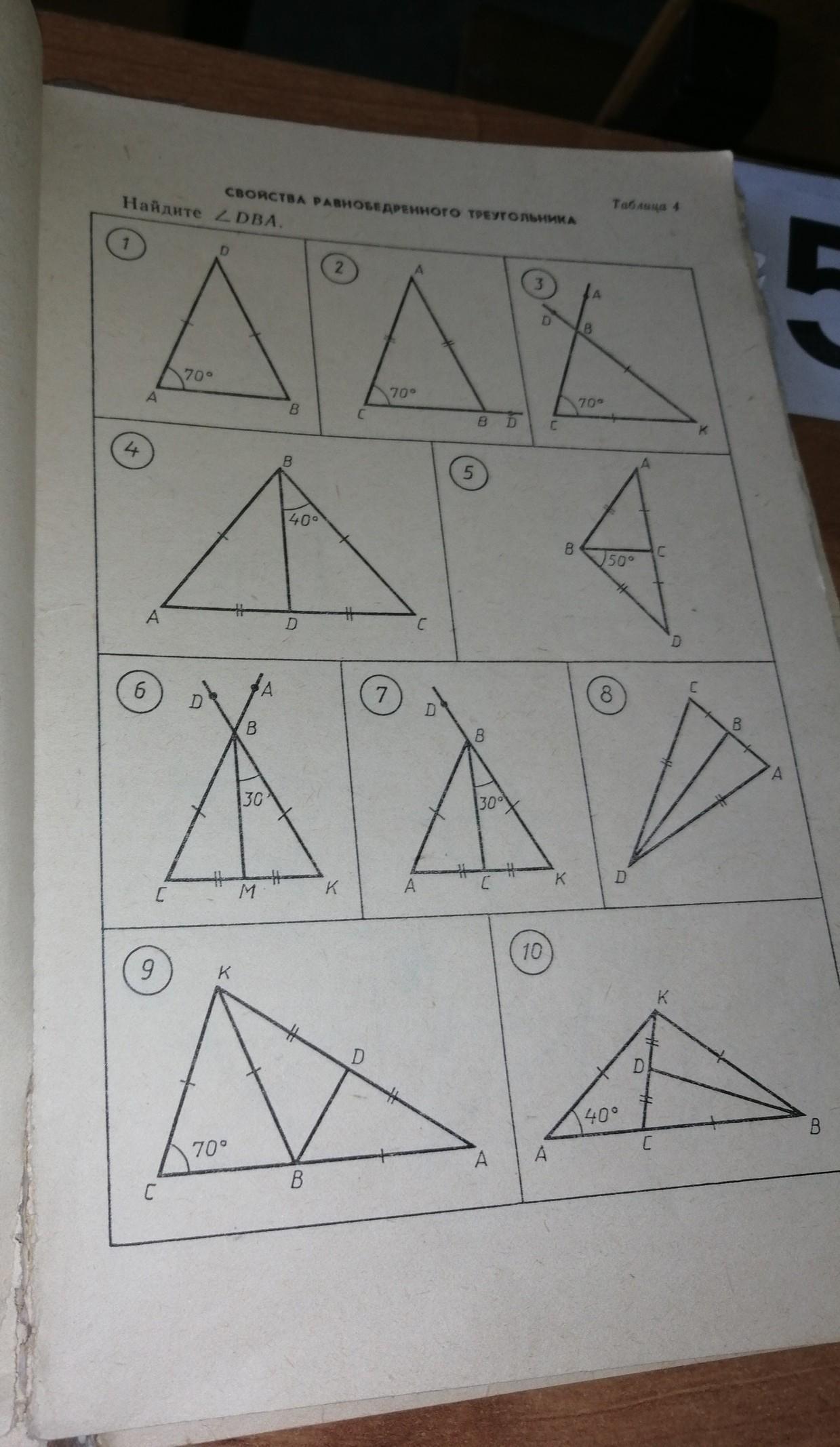 №10 трег АКВ-равносторонний, зн угол К=углуА=углуВ=40. АНАЛОГИЧНО DB-биссектр, зн уголКВD=углуDBC=40:2=20 а угол DBC это и есть угол DBA