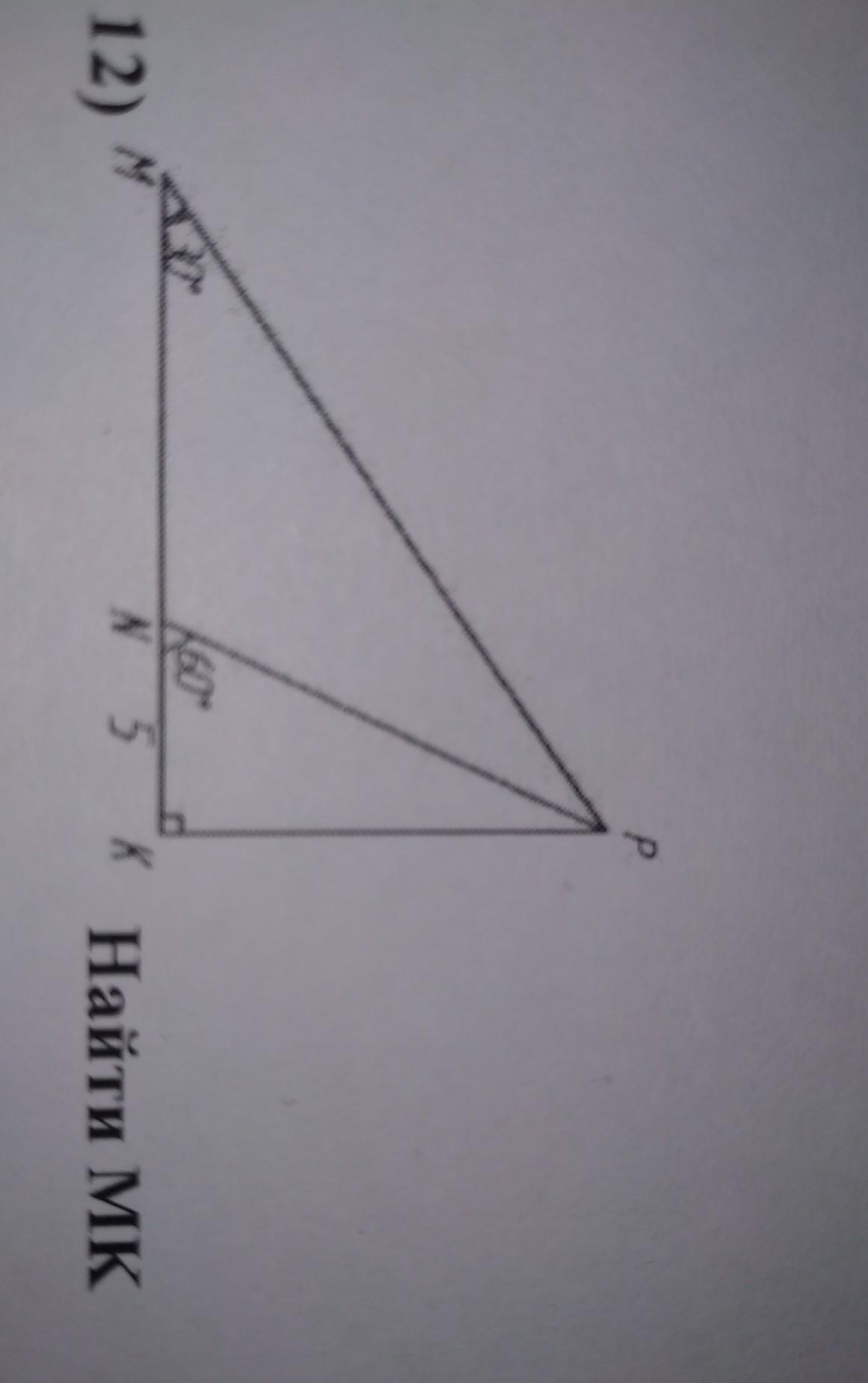 Угол NPK = 180-90-60=30 ( по свойству треугольников)