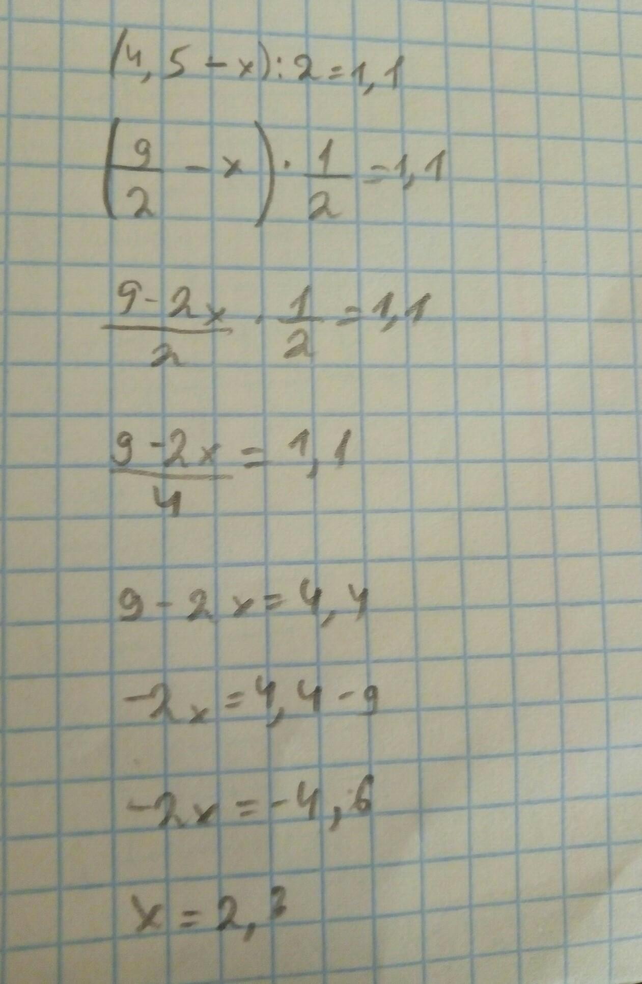 (4.5 - х) :2=1,1