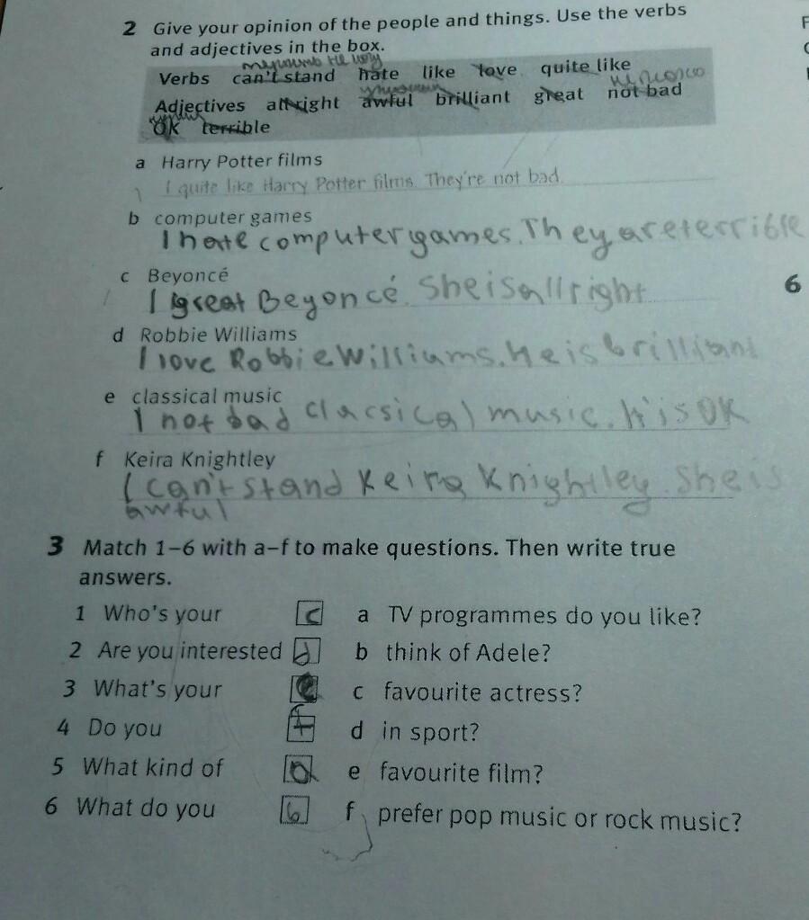 2) С) Правильно было бы "I quite like Beyonce. She is great" (Great - прилагательное, его использование в первом предложении некорректно)