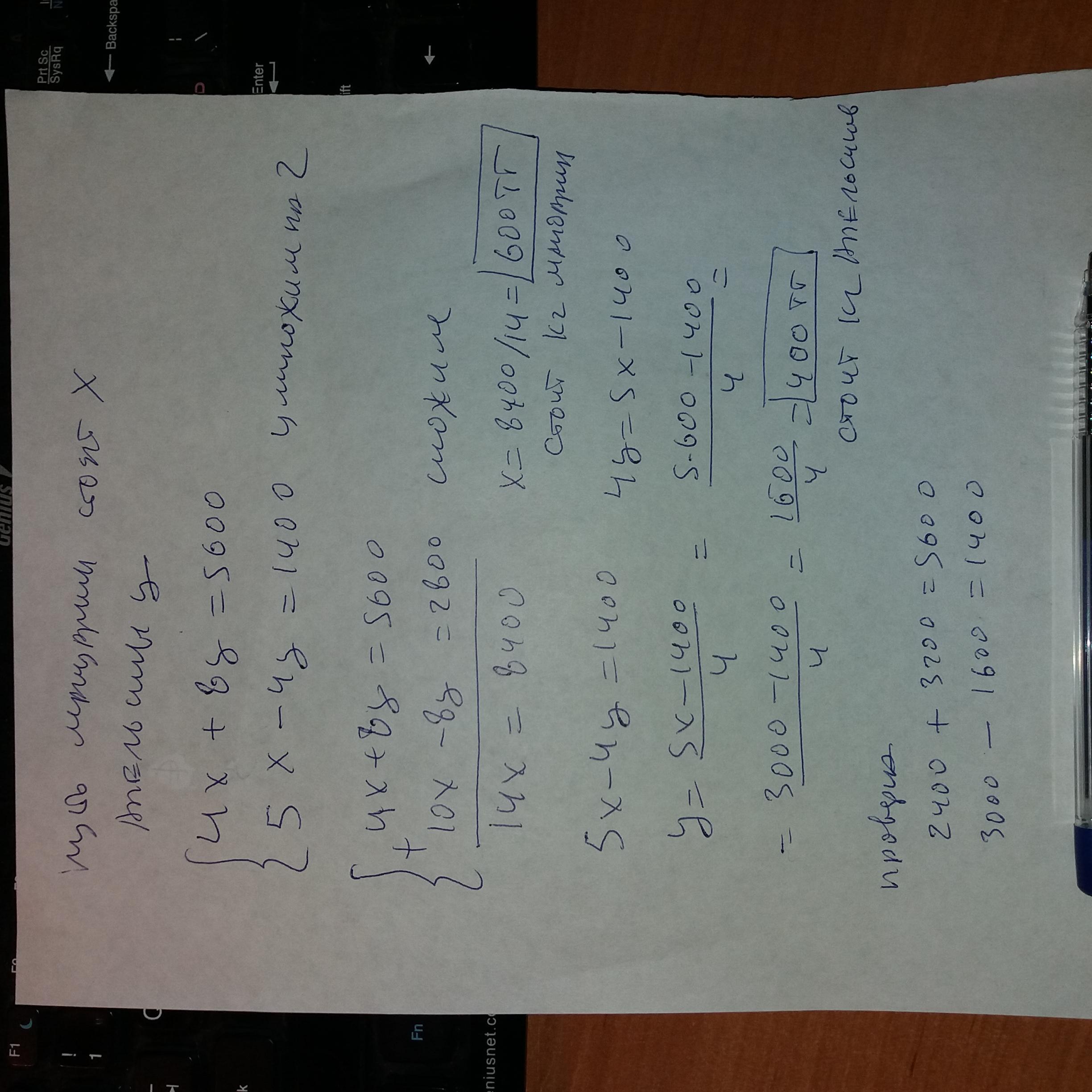 За 4 кг мандаринов и 8 кг апельсинов заплатили 5600 тенге. Сколько стоит 1 кг каждого вида фруктов, если 4 кг апельсинов на 1400 тенге дешевле, чем 5 кг мандаринов? Помогите пожалуйста срочно!