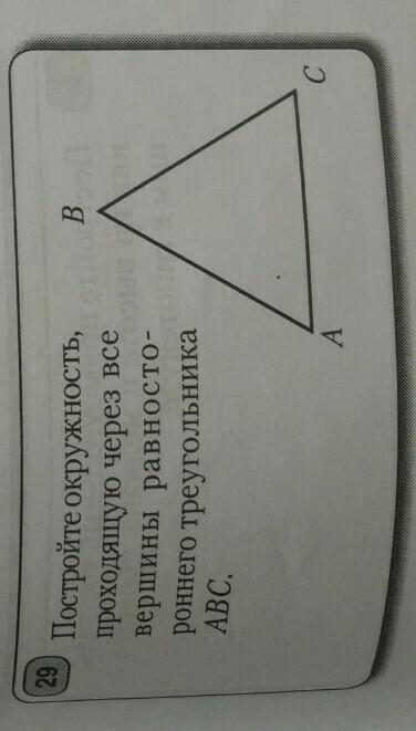 Центр окружности описанной вокруг треугольника находится на пересечении его серединных перпендикулярах. Серединные перпендикуляры в равностороннем треугольнике совпадают с высотами проведенными из его вершин. Следовательно просто проводим три высоты. Точка их пересечения будет центром описанной окружности.