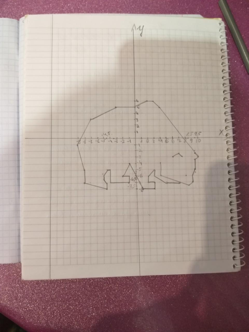 помогите нарисовать медведя срочно дам 90 баллов (4;-4), (4;-6), (8,5;-7,5), (9;-7), (9;-6), (9,5;-5), (9,5;-3,5), (10;-3), (9,5;-2,5), (4;5), (3;6), (2;6), (0;5),(-3;5), (-7;3), (-9;-1), (-8;-5), (-8;-7), (-4,5;-8), (-4,5;-7), (-5;-6,5), (-5;-6), (-4,5;-5), (-4;-5), (-4;-7), (-1;-7),(-1;-6), (-2;-6), (-1;-4), (1;-8), (3;-8), (3;-7), (2;-7), (2;-6), (3;-5), (3;-6), (5;-7), (7;-7) ухо (6;-3) (7;-2,5) (7,5;-3) глаз (8;-6)