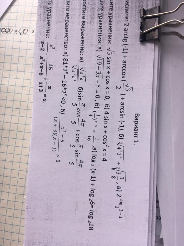 а) 2arctg(-1) + arccos(sqrt(3)/2) + arcsin(-1) = -2arctg(1) + arccos(sqrt(3)/2) - arcsin(1) = -π/2 + π/6 -π/2 = -π + π/6 = -5π/6