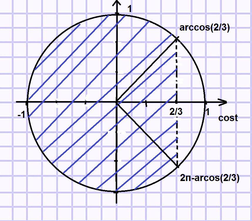 t=(arccos((2/3)+2kп; 2п-arccos((2/3)+2kп), k∈Z