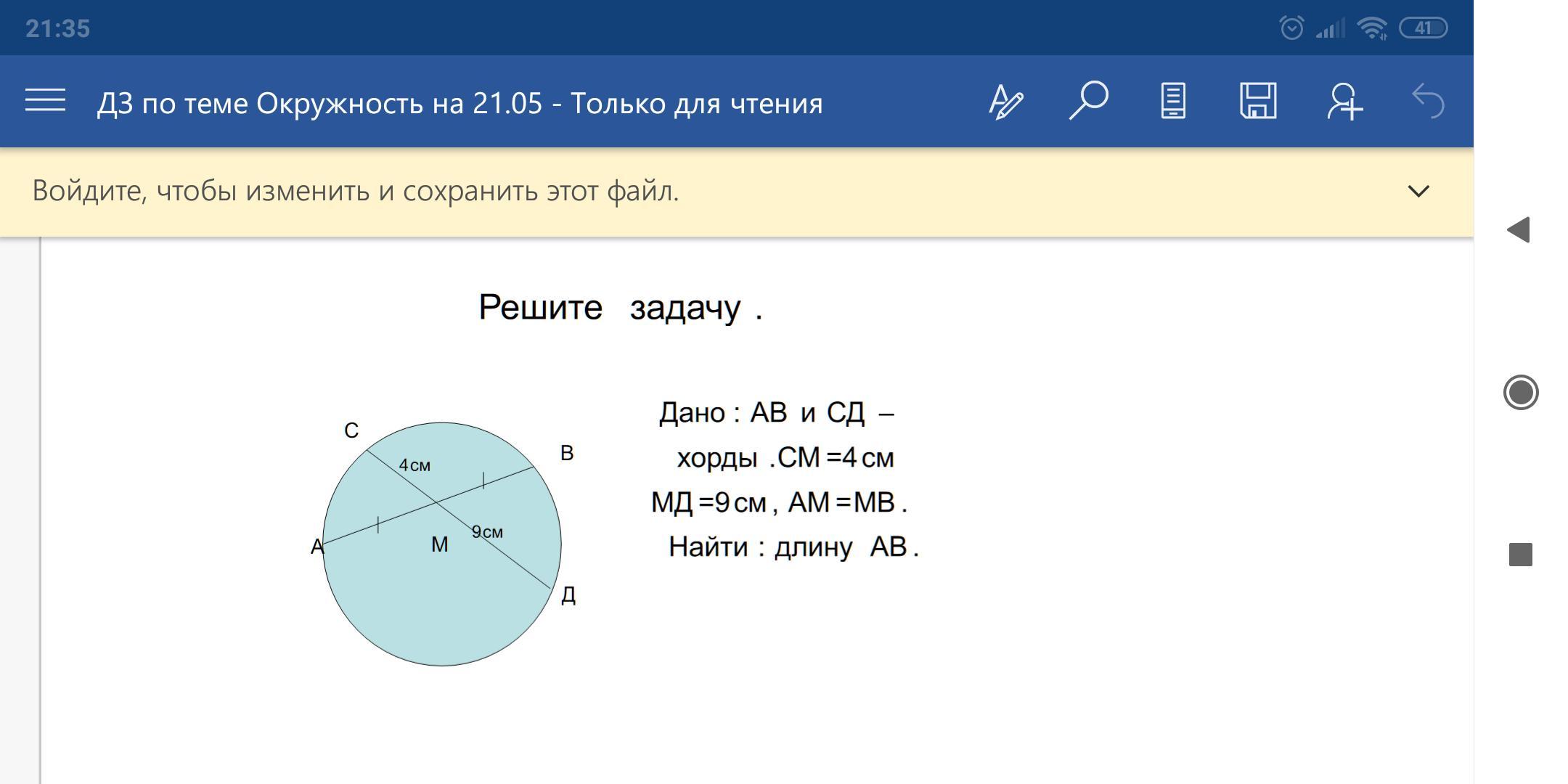 3) Пусть АМ=х, тогда по свойству отрезков хорд