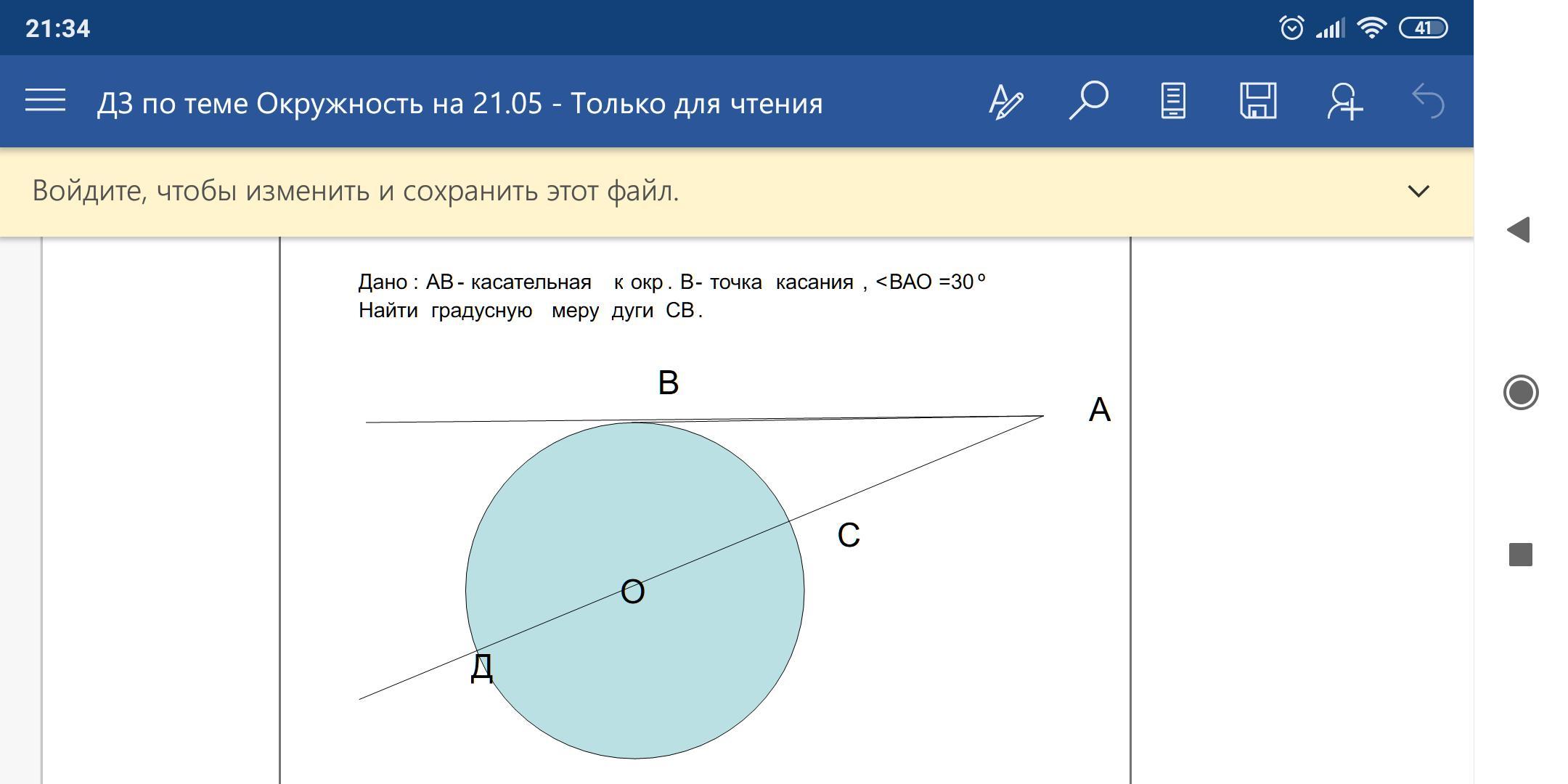 1) Соединим точки О и В; ОВ⊥АВ
