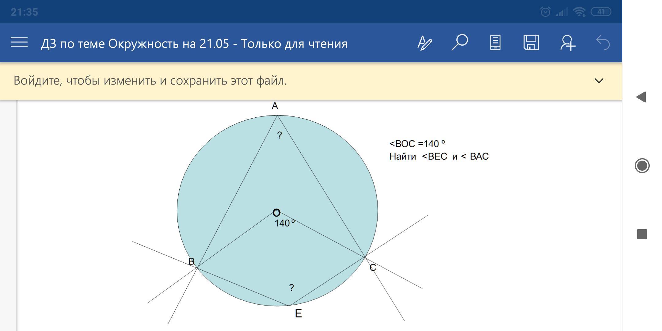 2) ∠ВОС - центральный, ∠ВАС - вписанный ⇒ ∠ВАС=140:2=70°