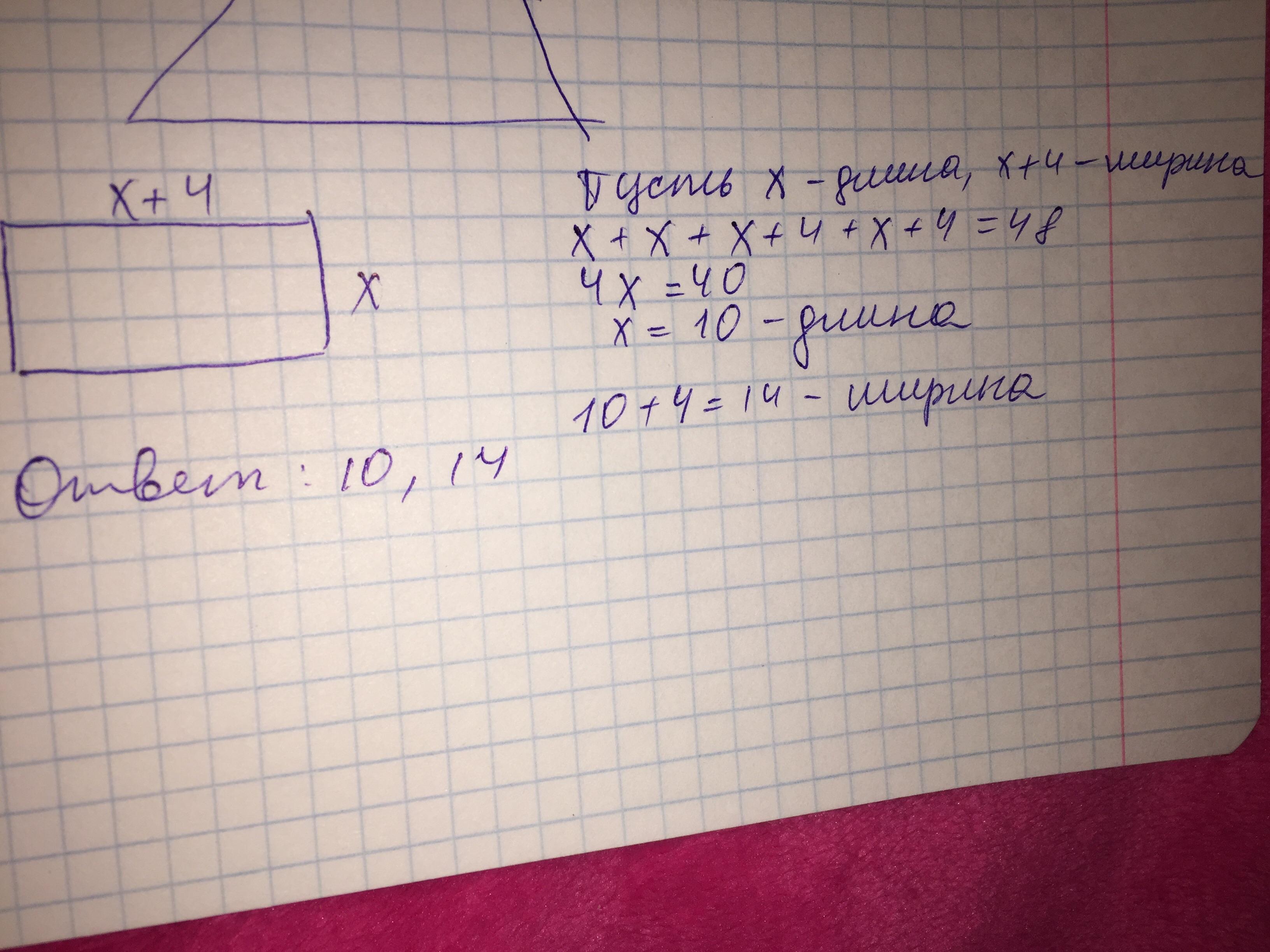 сумма всех сторон прямоугольника 48см .Его длина на 4 см больше ширины найдите стороны прямоугольника .(решите с помощью уравнения. )