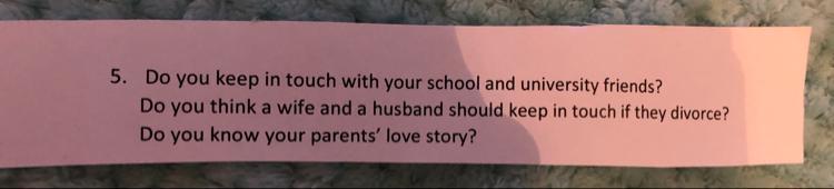 В 3 вопросе история знакомства твоих родителей.я поэтому и спросила