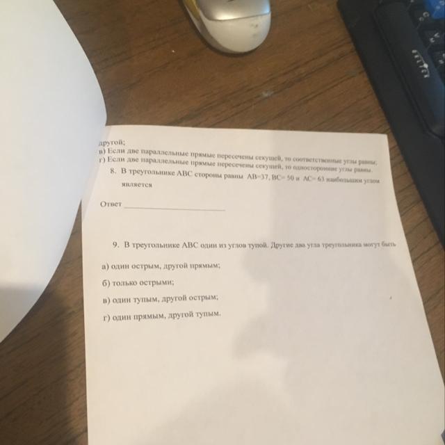 В 9том ответ б) т.к если один угол тупой то два других могут быть только острыми