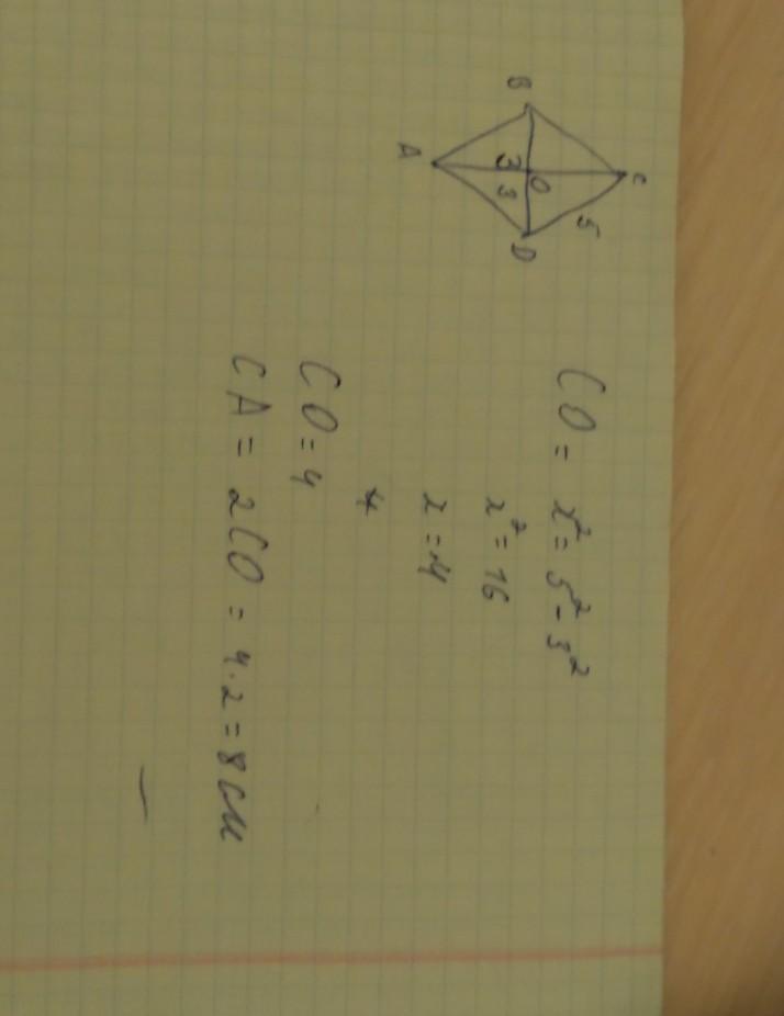 Сторона ромба равна 5,а одна из его диагоналей равна 6.Найти вторую диагональ.