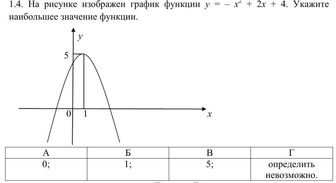 Наибольшее значение данной функции равно ординате вершины параболы - это 5
