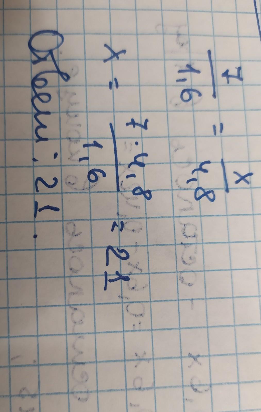 7 : 1,6=х : 4,8