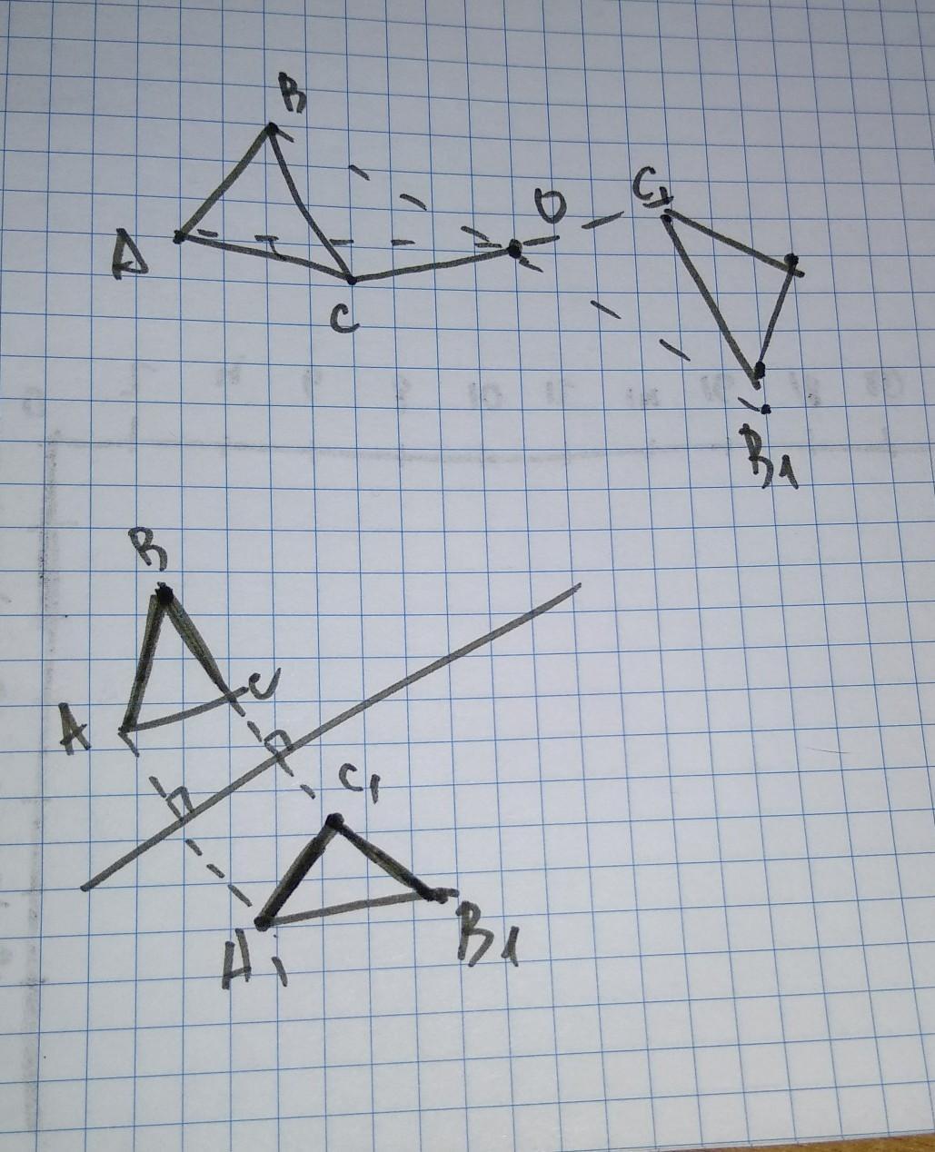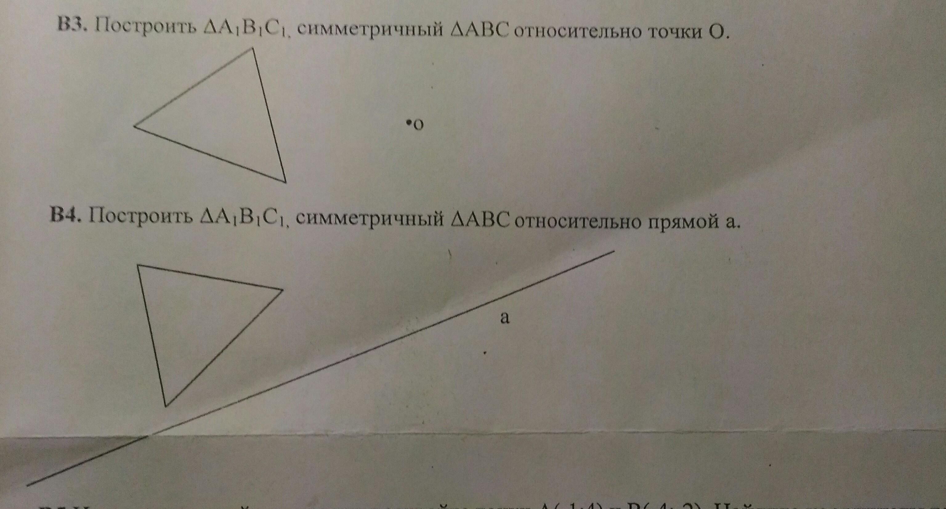от каждого угла проведи перпендикуляры к прямой и продли их на то же расстояние, на каком находятся эти углы от прямой