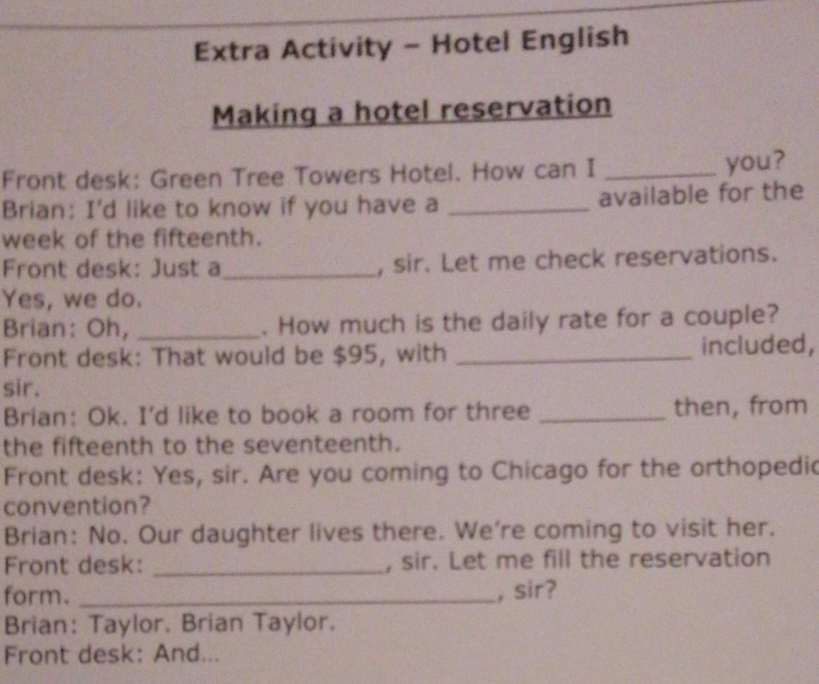 ПОМОГИТЕ ПОЖАЛУЙСТА!!! Extra Activity - Hotel English