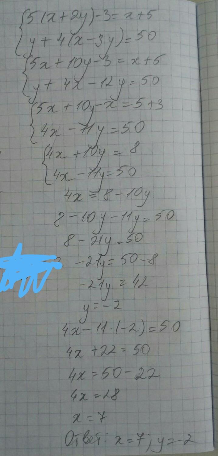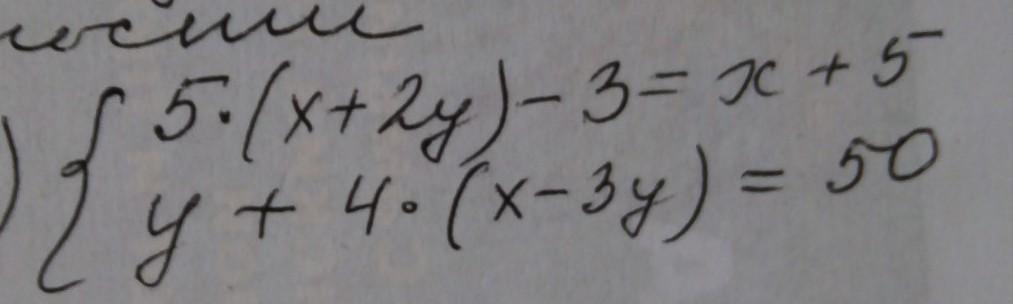 {5*(x+2y)-3=x+5 {5x+10y-3=x+5 {4x+10y=8