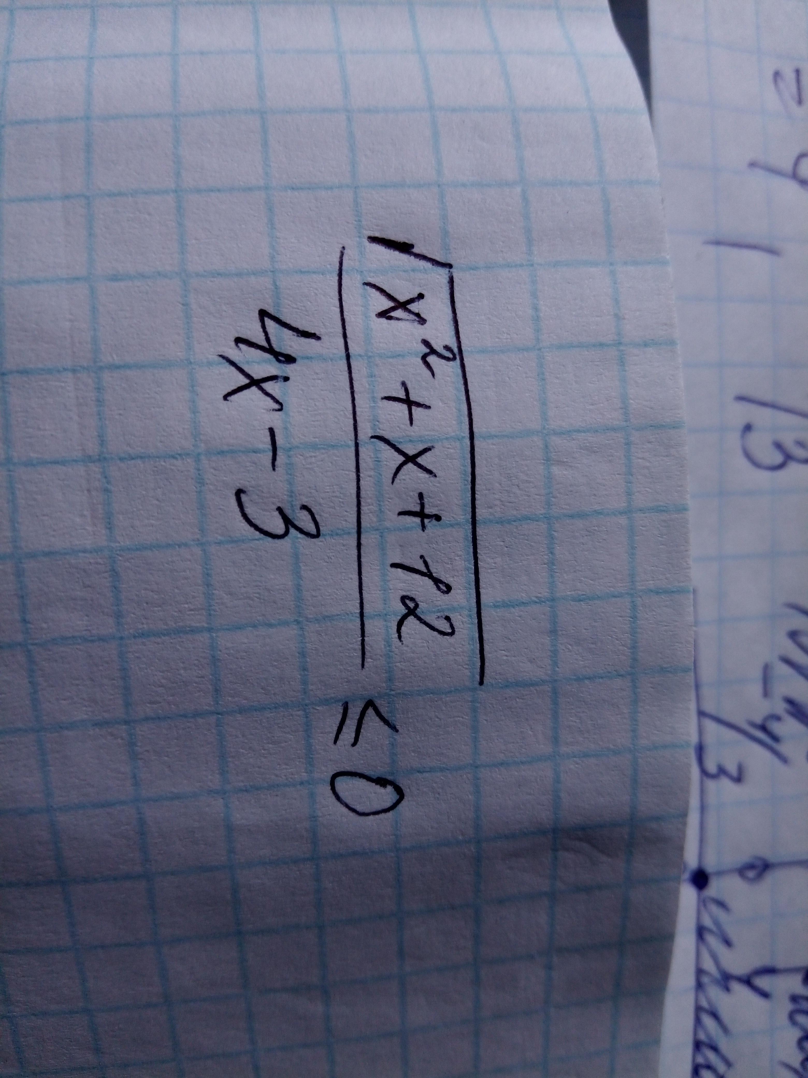 frac{sqrt{x^2+x+12}}{4x-3}leq 0\\sqrt{x^2+x+12}geq 0; ; pri; ; xin R; ; ; ; i; ; ; ; x^2+x+12geq 0\\x^2+x+12=0; ; to ; ; D=1-48=-47&lt;0; ; Rightarrow ; ; x^2+x+12&gt;0; ,; xin R\\sqrt{x^2+x+12}&gt;0; ; Rightarrow ; ; ; 4x-3&lt;0; ; ,; ; x&lt;frac{3}{4}\\Otvet:; ; xin (-infty , ,frac{3}{4}; ); .