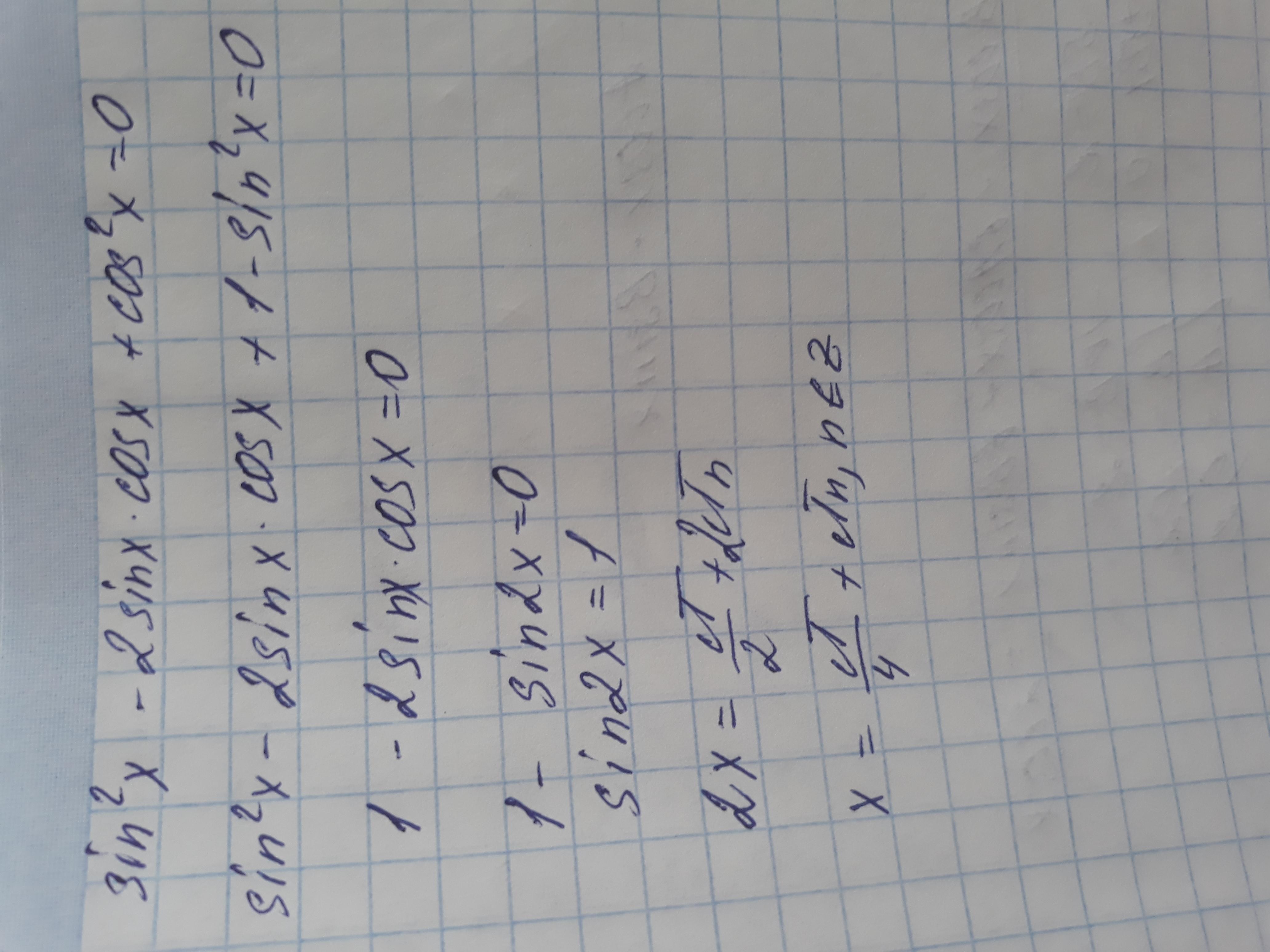 (sinx)^2-2sinxcosx+(cosx)^2=(sinx-cosx)^2=0