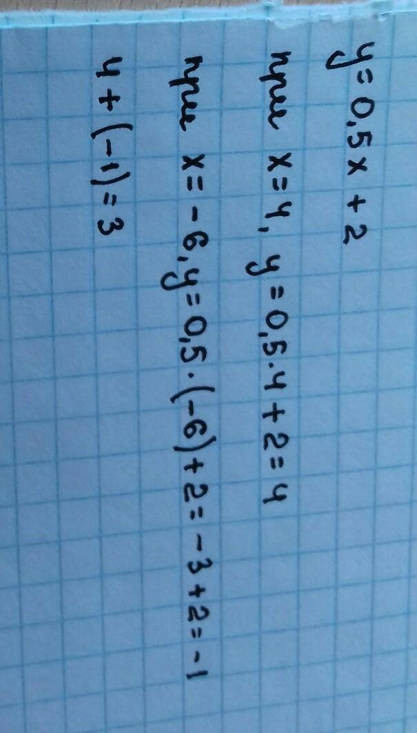 7. (16) Вычислите значения линейной функции y = 0,5х + 2 при х=4,х=-6 и