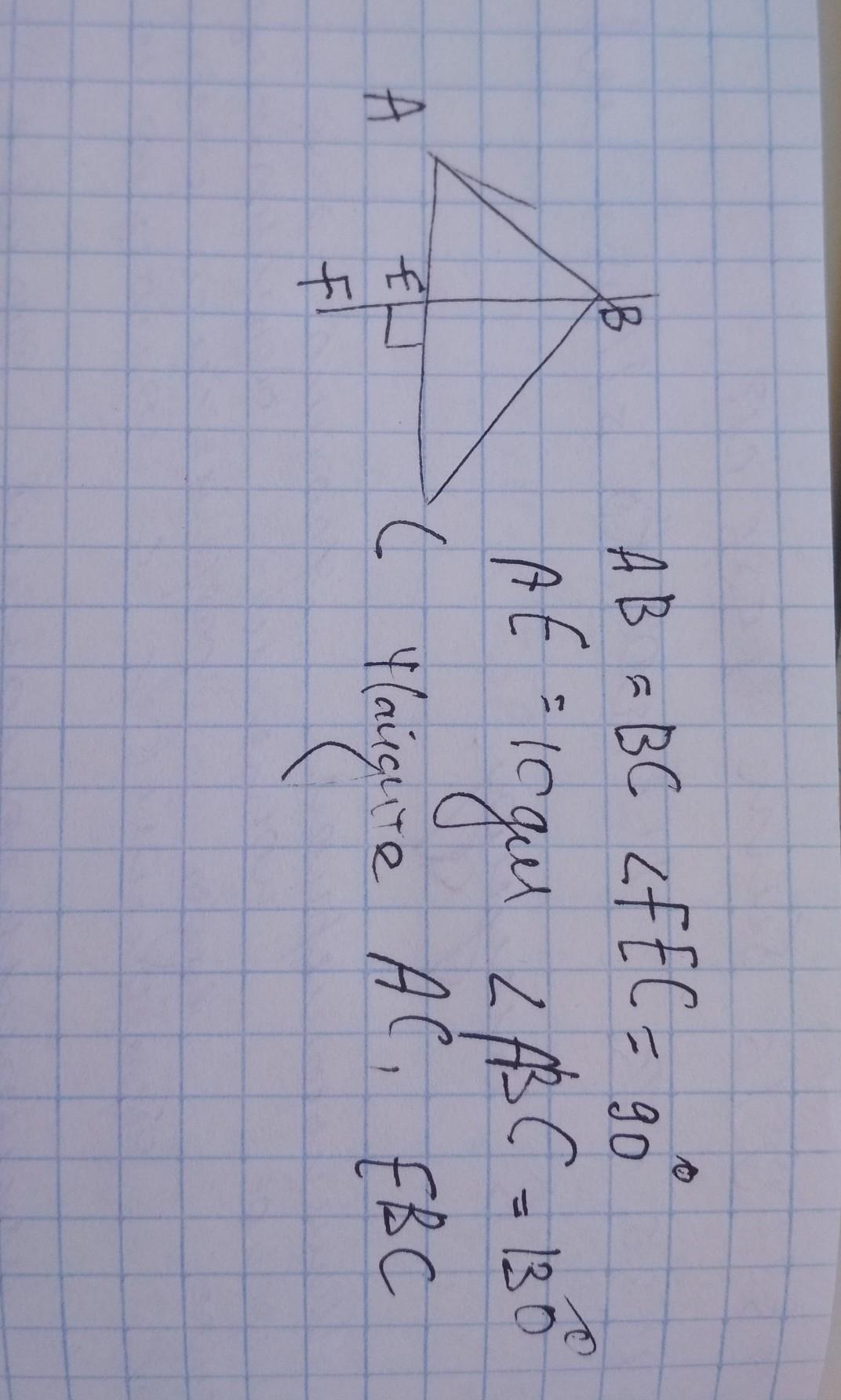 ∠ ЕВС равен 130°/2 =65°, т.к. ВЕ - это высота, проведенная к основанию равнобедренного треугольника, а она я и медиана, и биссектрисой является. Биссекртиса делит угол пополам. Медиана делит сторону пополам.Т.к. АЕ=СЕ, то АС =2*10дм=20 дм.