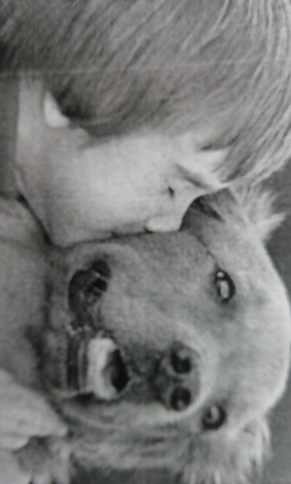 Мальчик, соскучившийся по своей собаке, поцеловал ее.