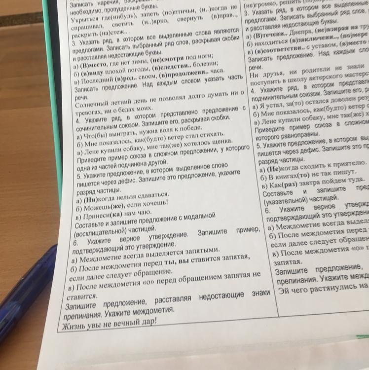 Ответ:Укрыться где-нибудь, запеть по птичьи, никогда не спрашивал, светить не ярко, свернуть вправо, раскрыть на стежь. 3. а) 4. в) (так же), 5. в) Жизнь увы, не вечный дар! (Другая половина) 3. в) в соответствии с уставом, вместо .... 4. б) 5. б).