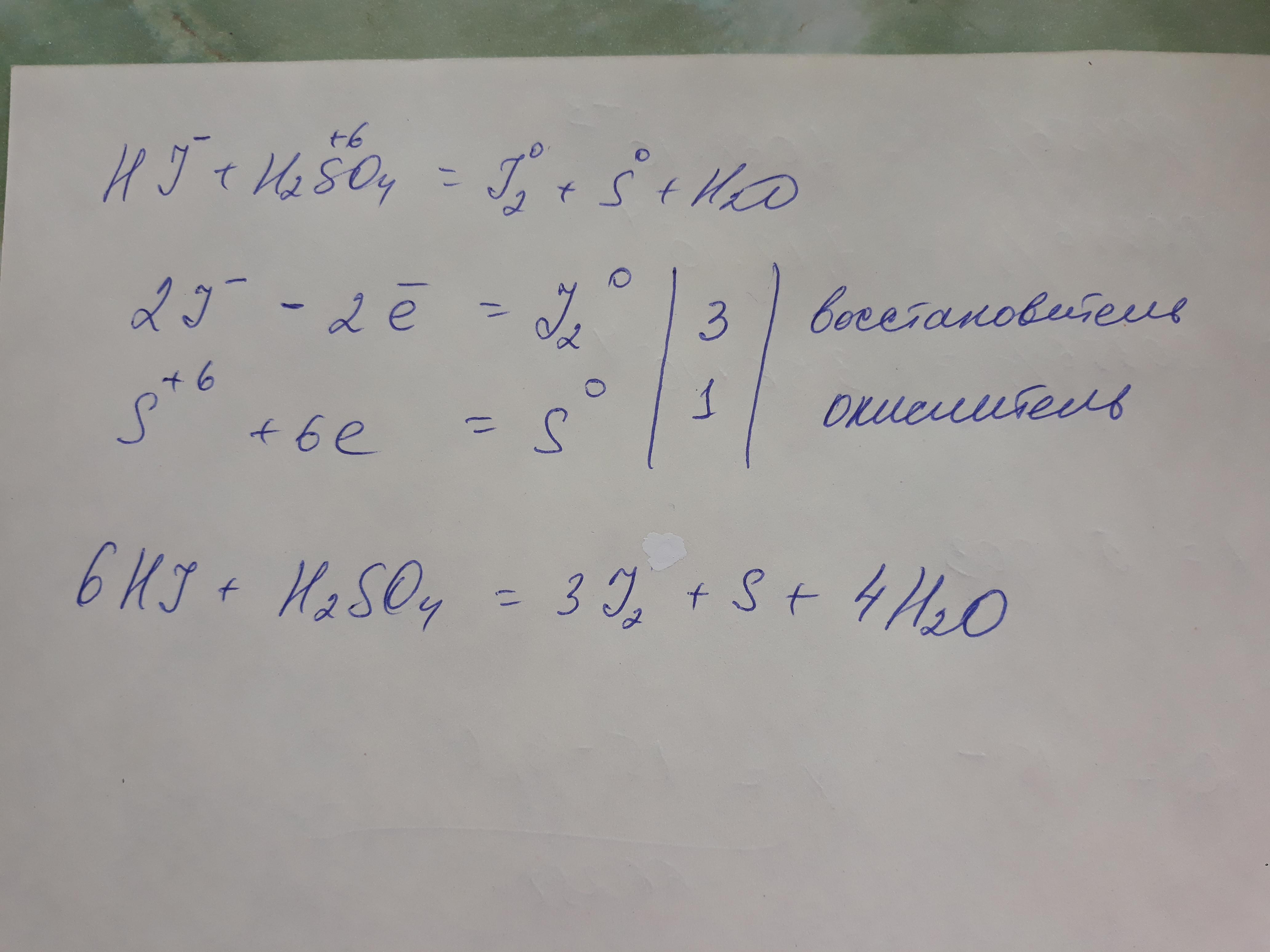 6HI+H2SO4=3I2+S+4H20