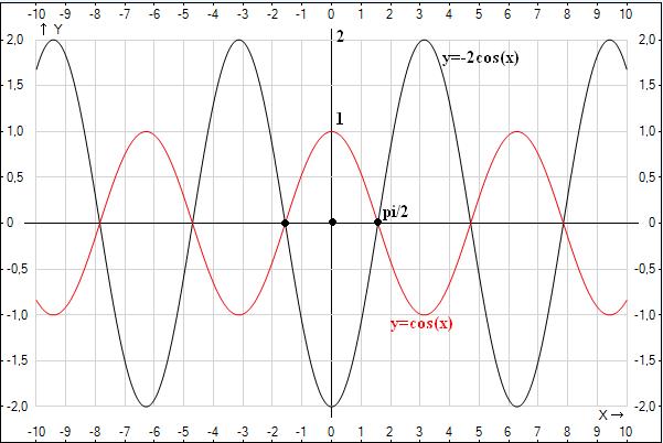 График постройте путем растяжения и зеркального отображения графика y=cosx.