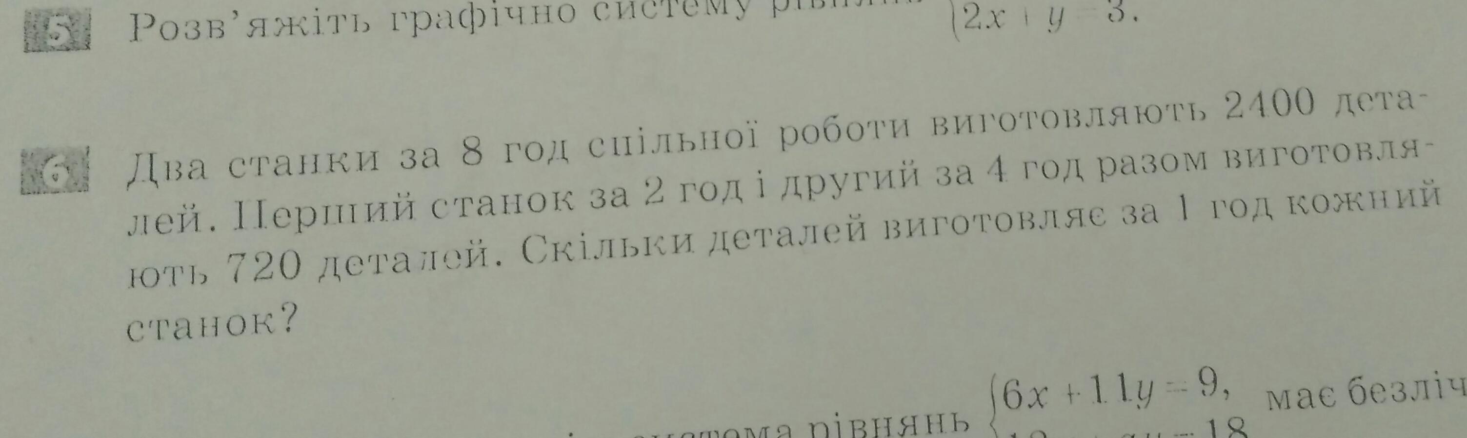 x деталей -изготавливает 1 станок в час, y деталей -изготавливает 2 станок в час. составляем систему : {8*(x+y)=2400, 2x+4y=720; сокращаем 1 уравнение системы на 8 и получаем: { x+y=300, 2x+4y=720; x=300-y. подставляем во 2 уравнение системы: 2*(300-y)+4y=720; 600-2y+4y=720; -2y+4y=720-600; 2y=120; y=120/2=60. x=300-60=240. Ответ: 1 станок изготавливает в час 240 деталей, 2 станок изготавливает в час 60 деталей.