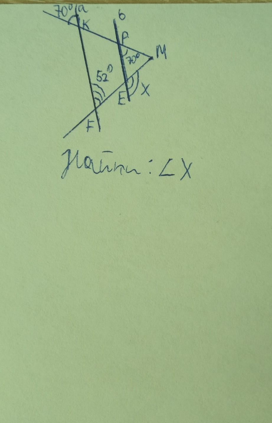 Рем=кfe=52 как соответственные углы при параллельных Е и F и секущей М