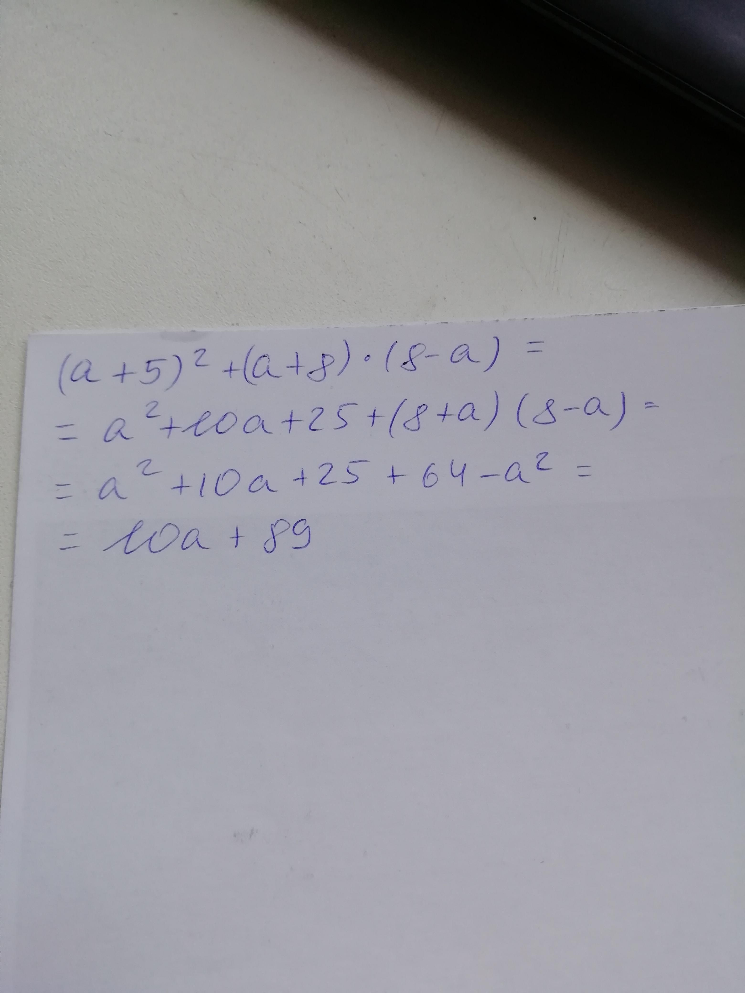 (a+5)^2+(a+8)*(8-a)=a^2+10a+25+64-a^2=10a+89. Ответ: 10a+89.